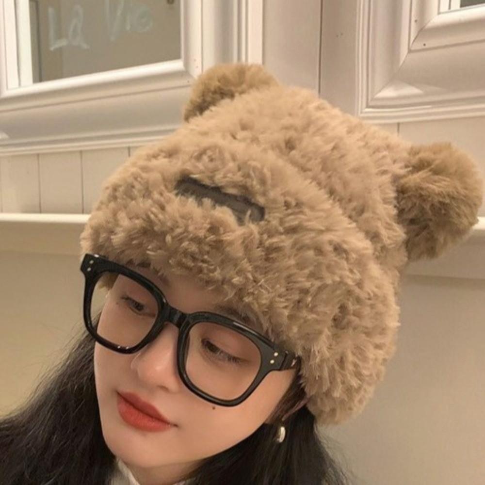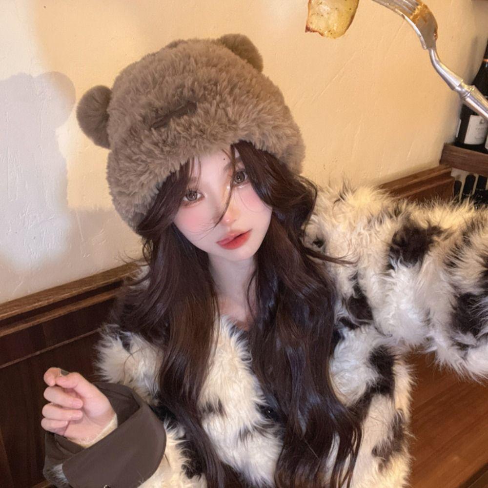Подарки Корейский стиль Плюшевая шапка-медведь Ветрозащитные Мягкие плюшевые шапки-пуловер Сохраняют тепло Утолщенная шапка с защитой ушей Осень и Зима