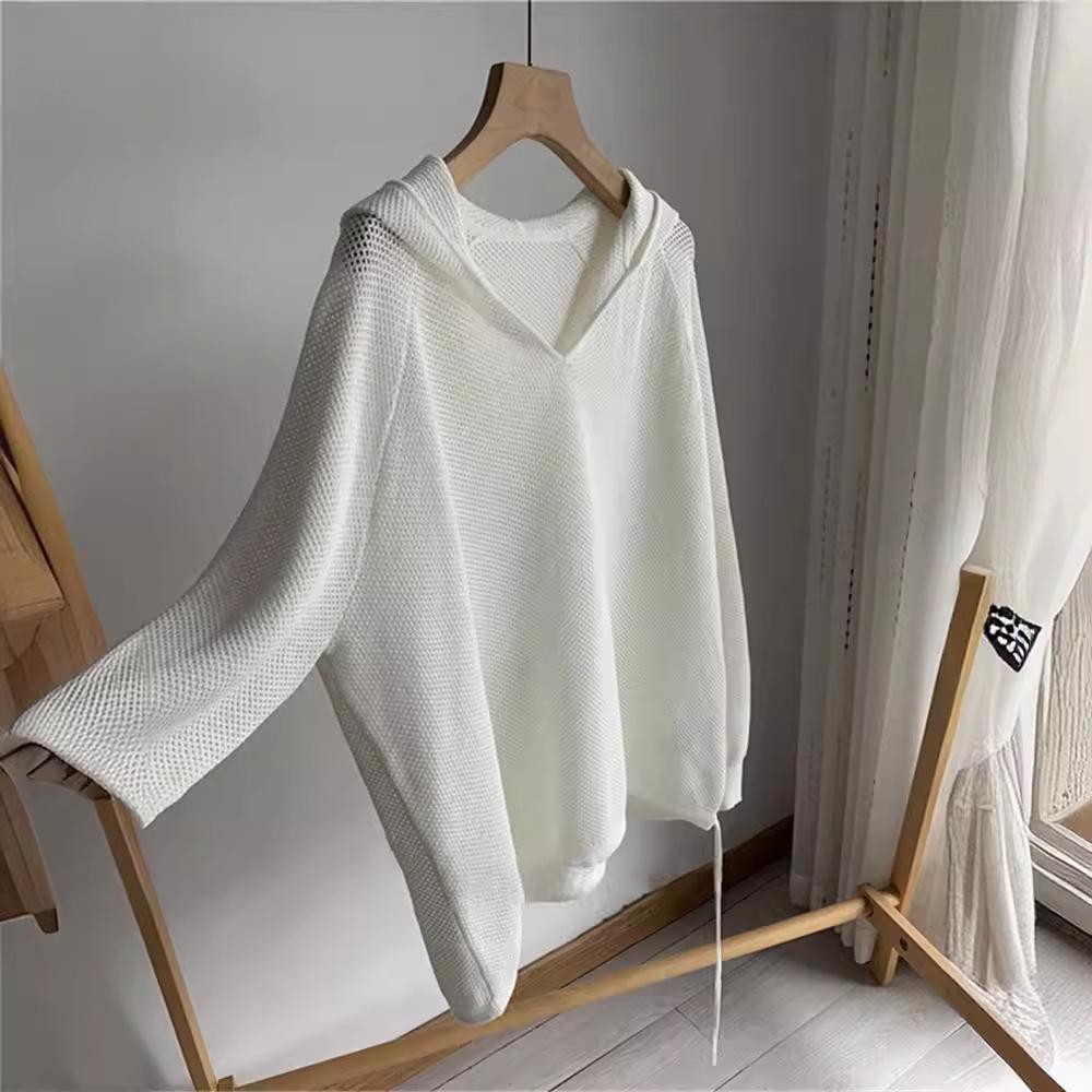 Женский трикотаж с капюшоном Lazy Style, весна-лето, белый, с длинным рукавом, повседневный, свободный, пуловер, топы, женский свитер