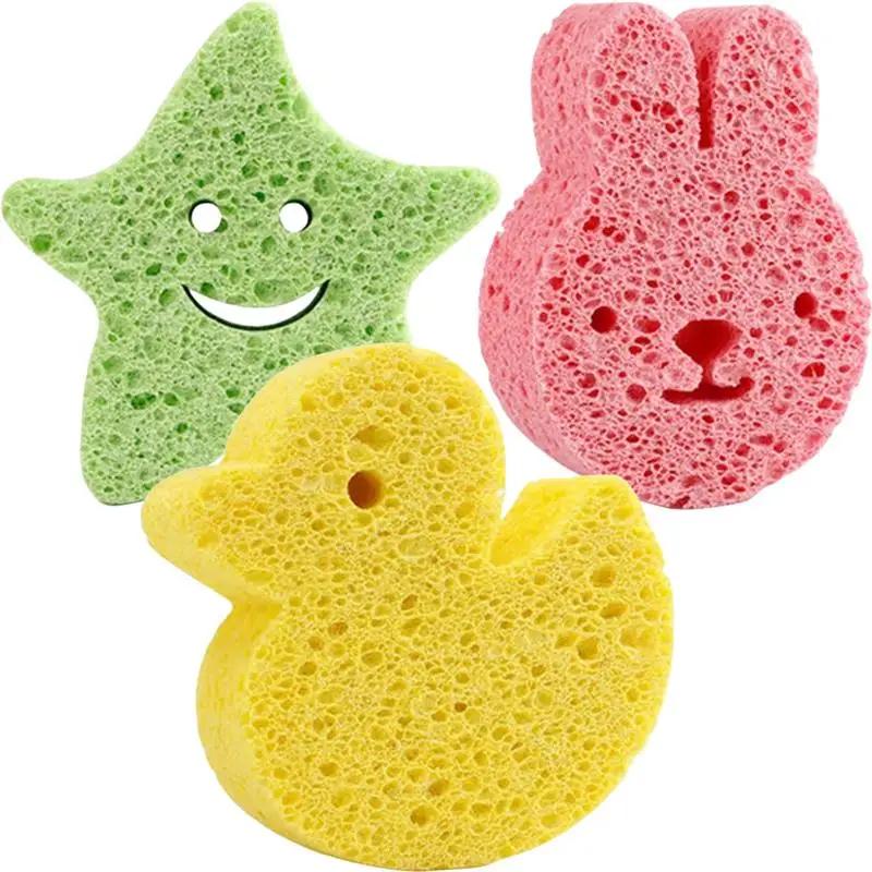 Duck Children's Bath Sponge Sponges Body Wash Bathing Cute Frosted Wood Pulp Baby Bath Brush Rubbing Towel for Home Star Rabbit