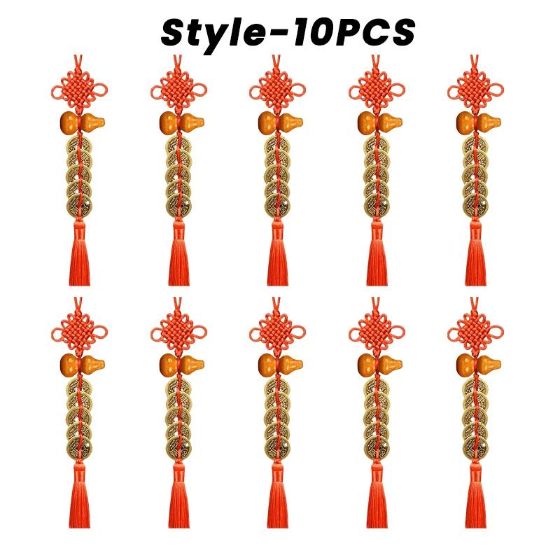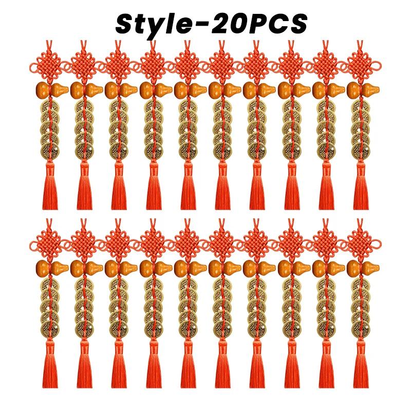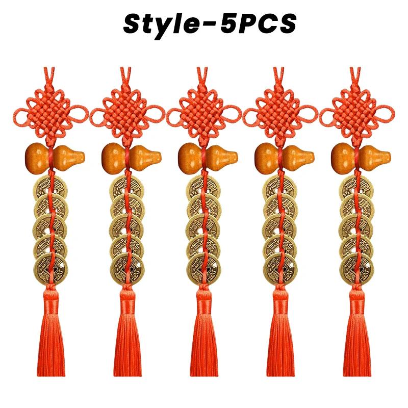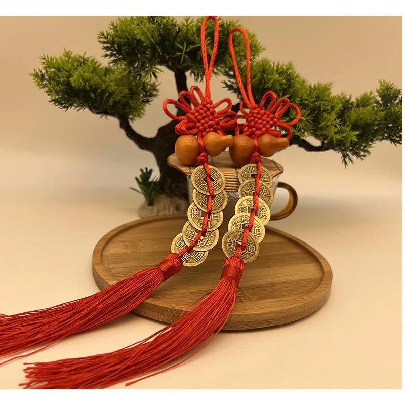 Китайские монеты фэн-шуй с красным узлом бесконечности ручной работы. Домашний декор, подвесное украшение, счастливые амулеты для автомобиля, богатство, успех