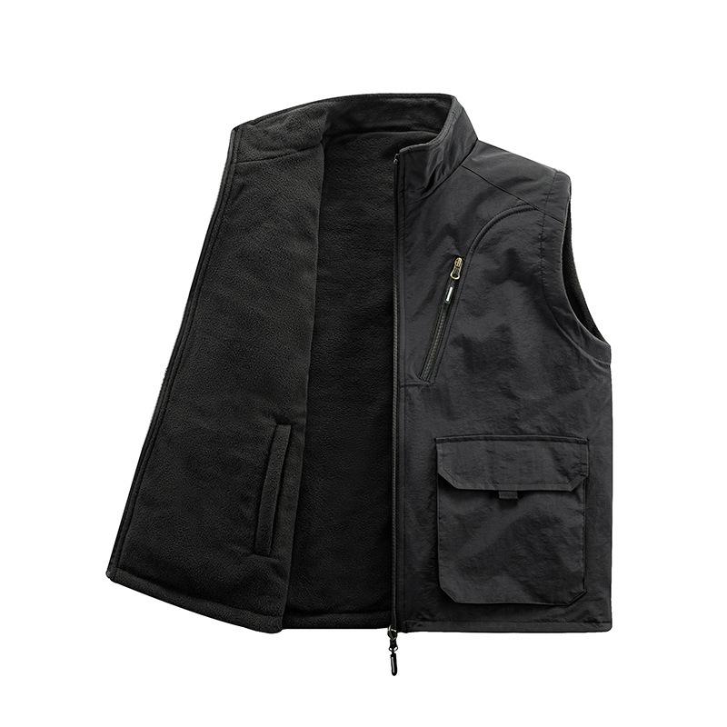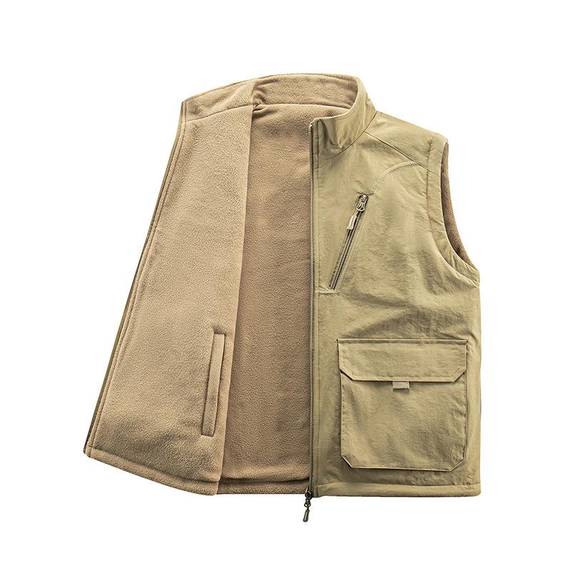 Осенне-зимний мужской жилет среднего возраста из утолщенного бархата с основой для сохранения тепла и повседневным жилетом, с многокарманным жилетом с обеих сторон