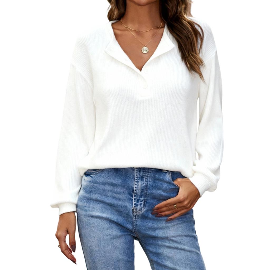 Женский повседневный свободный модный однотонный пуловер с рубчиком и длинными рукавами