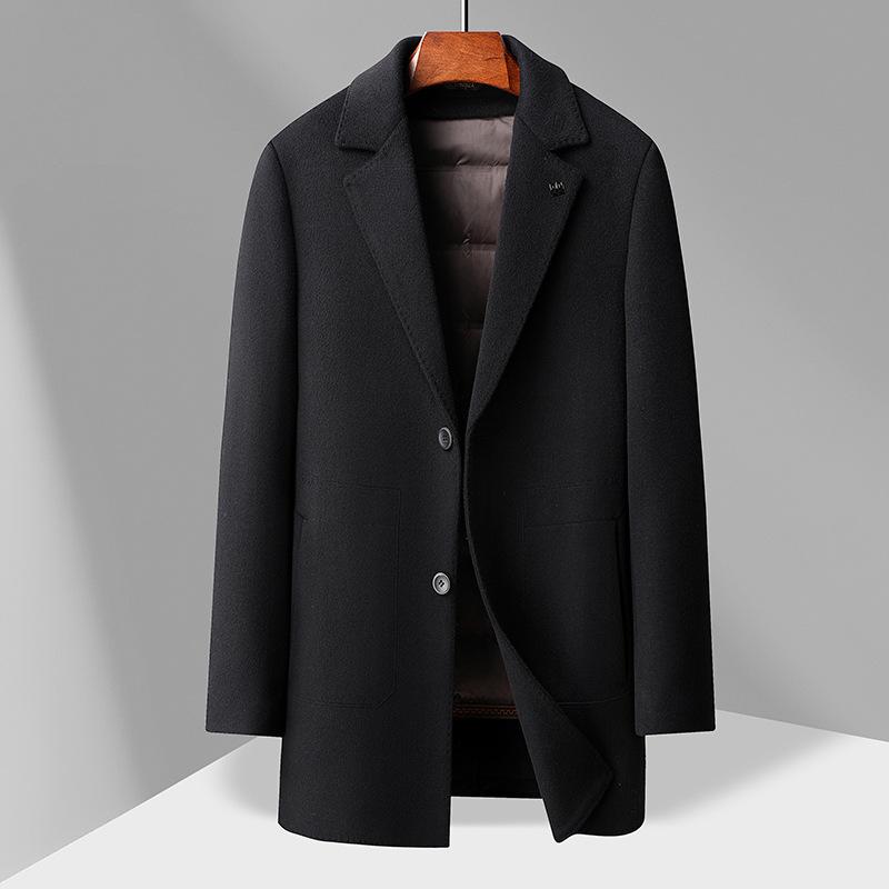 Мужское шерстяное пальто осень-зима средней и длинной длины с воротником-стойкой и подкладкой из белого утиного пуха, молодежное деловое двухстороннее шерстяное пальто