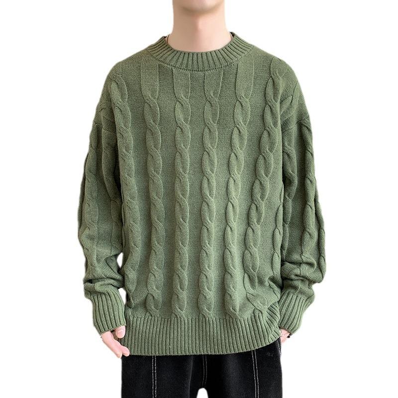 Осенне-зимний свитер с узором «перекрученный узор», мужской осенне-зимний внутренний свитер с круглым вырезом, вязаный мужской свитер с длинными рукавами, нить