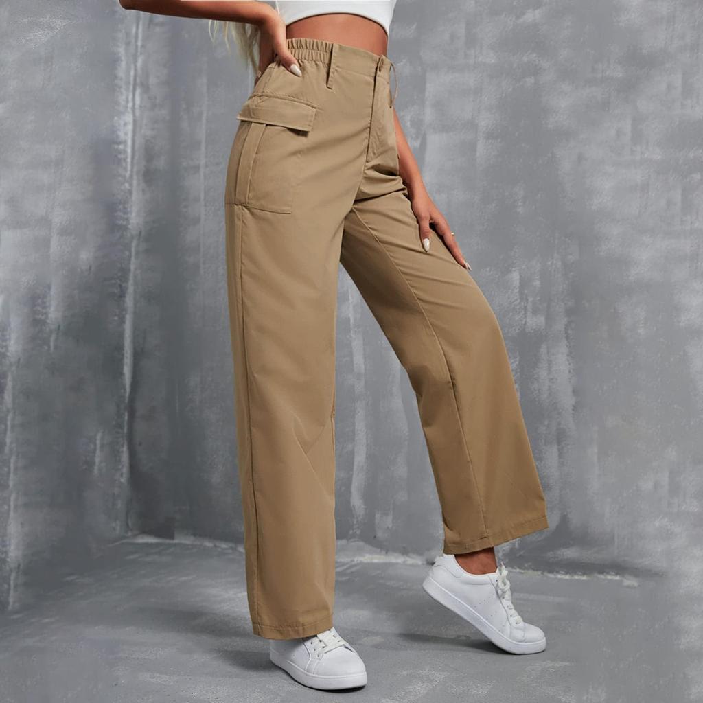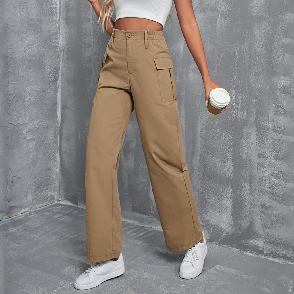 Женские модные однотонные брюки прямого кроя с высокой посадкой и карманами, повседневные брюки