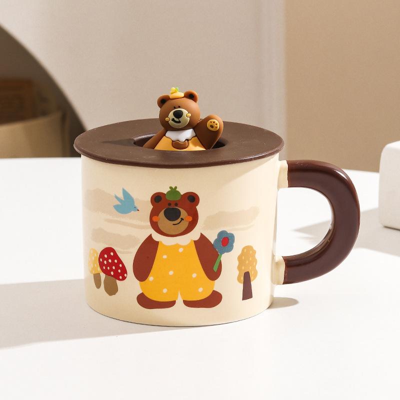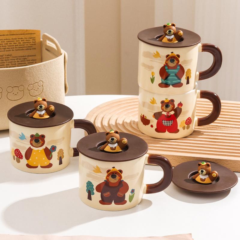 Мультяшная кружка Фуфу Милый медведь с крышкой Пара Дома Чашка для воды Керамика Офис Подарочная коробка