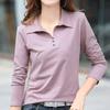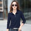 Однотонная большого размера с длинным рукавом, воротник ПОЛО, облегающая, простая верхняя одежда, футболка, женская базовая рубашка, весна и лето — купить товар онлайн с бесплатной доставкой по всему миру!