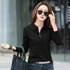 Однотонная большого размера с длинным рукавом, воротник ПОЛО, облегающая, простая верхняя одежда, футболка, женская базовая рубашка, весна и лето