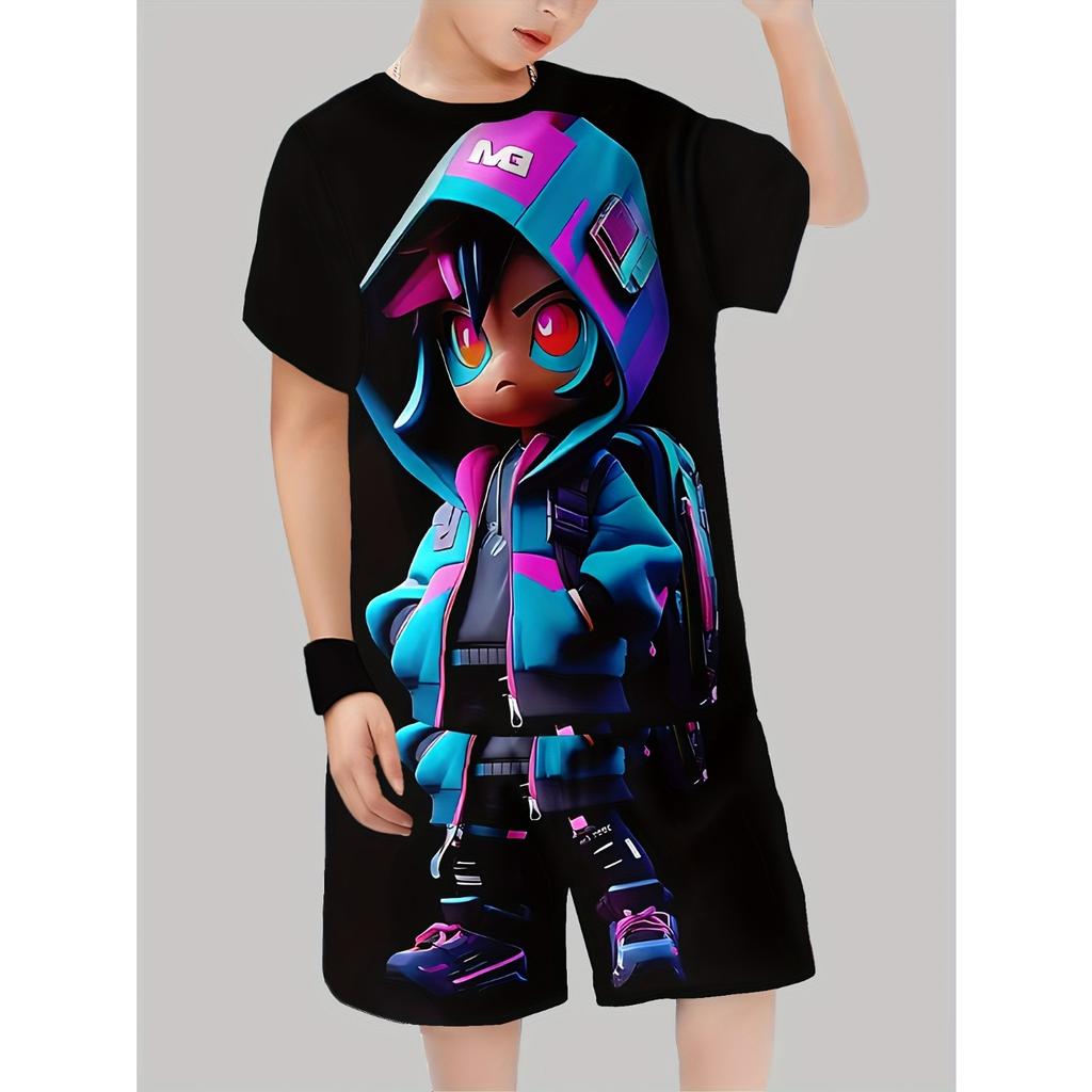 Модная мужская повседневная футболка с 3D-принтом, пуловер с коротким рукавом, шорты, футболка, комплект для мальчиков, для улицы