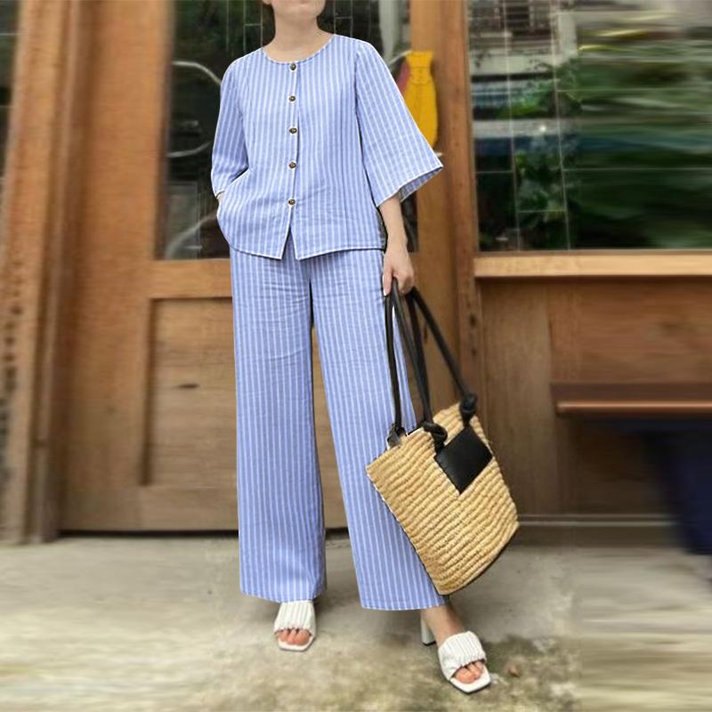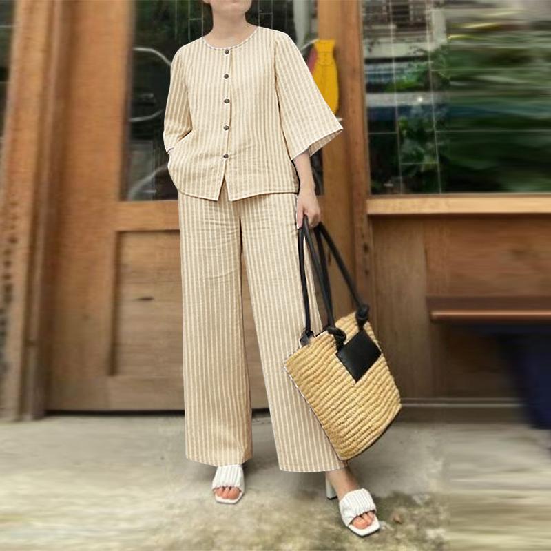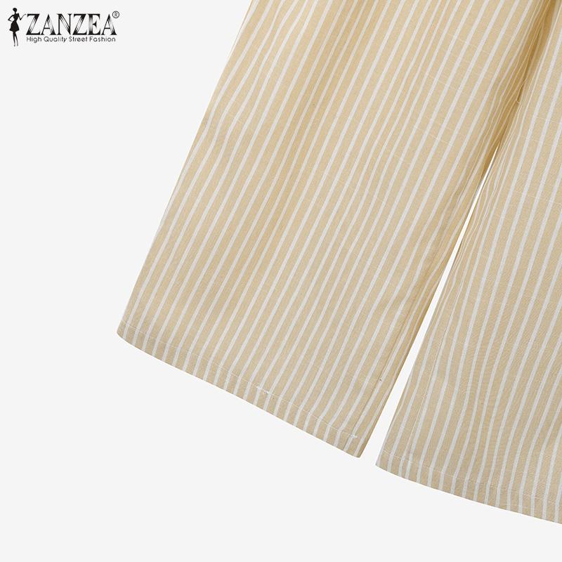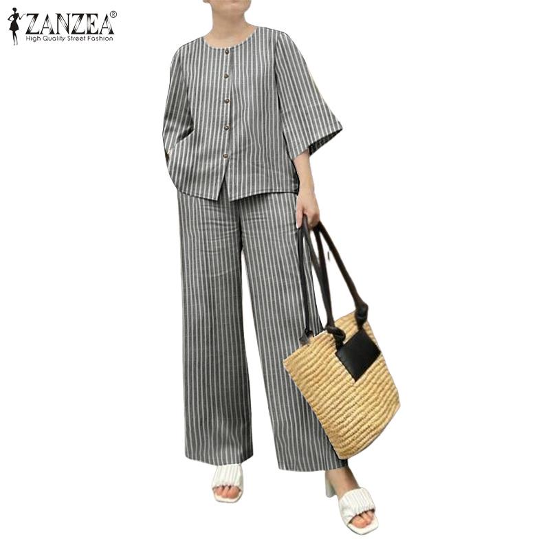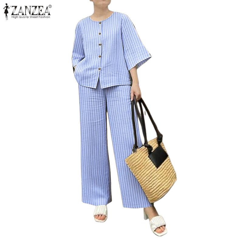 ZANZEA Женская блузка с рукавом 3/4 и брюки, повседневные комплекты-двойки с принтом в полоску