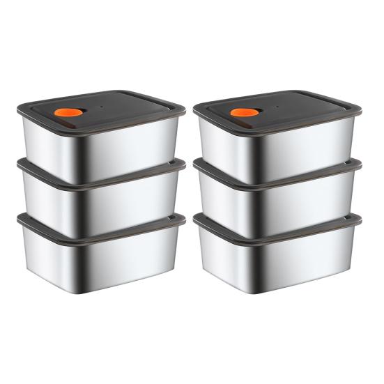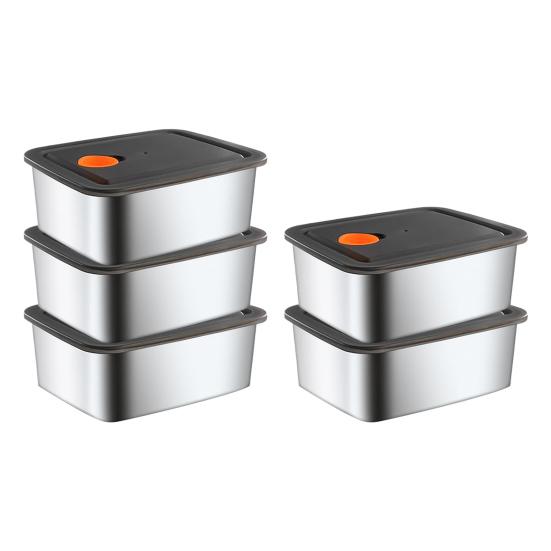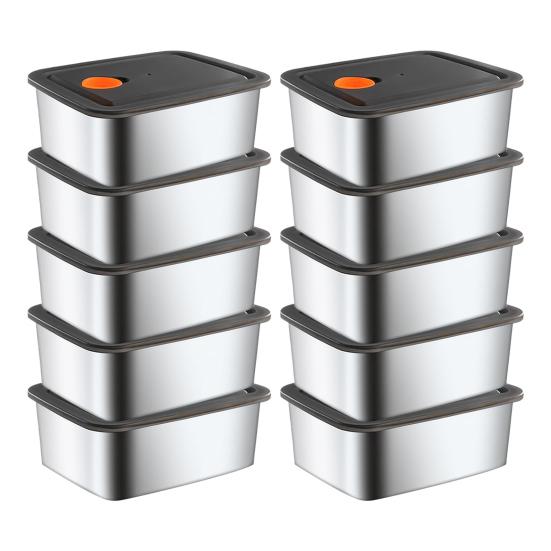 Прочная конструкция из нержавеющей стали: Изготовленные из нержавеющей стали, устойчивой к ржавчине, эти контейнеры для хранения продуктов обеспечивают долговечное использование, сохраняя при этом естественные вкусы вашей еды.. Скажите «прощай» запахам и пятнам для свежих, чистых и здоровых блюд каждый раз.