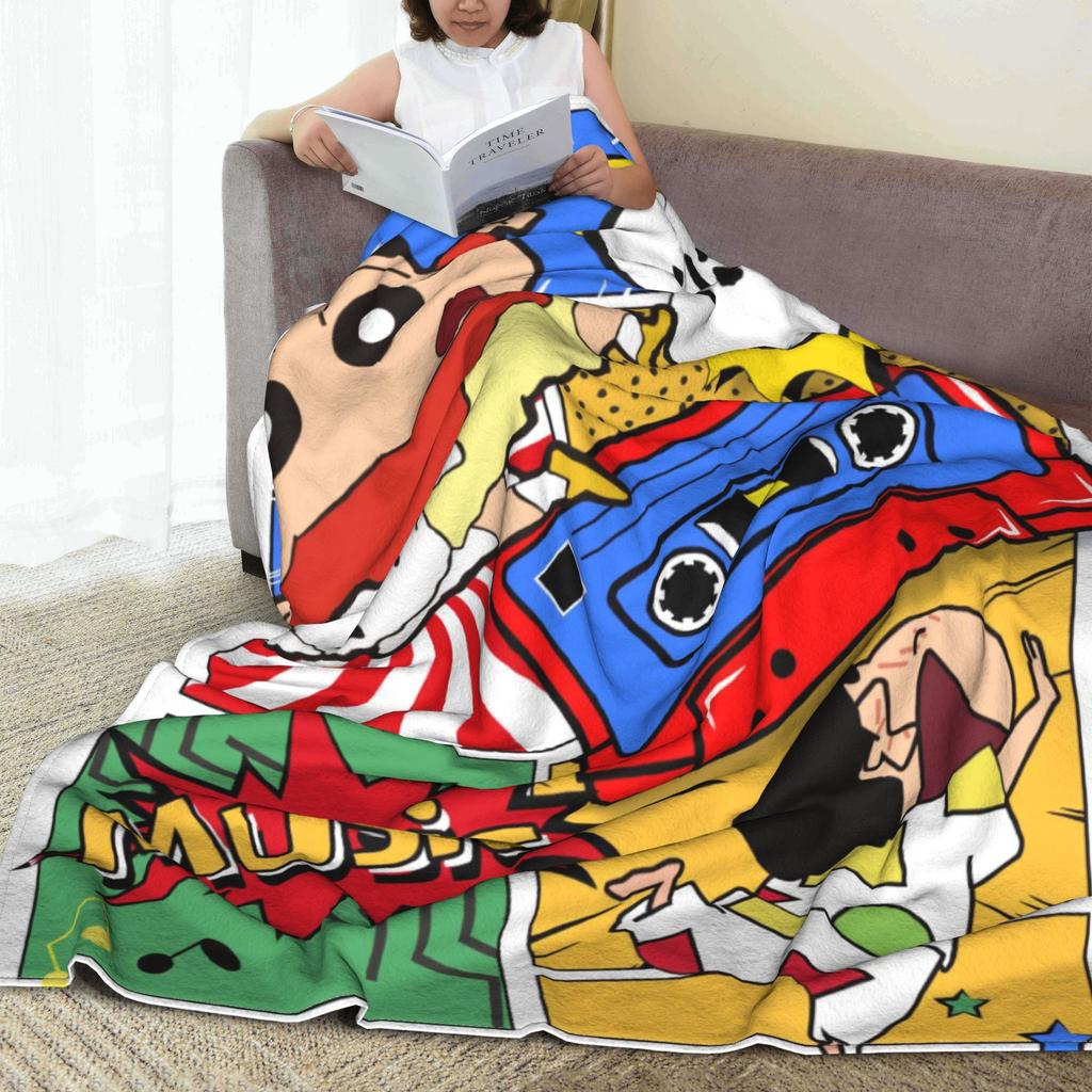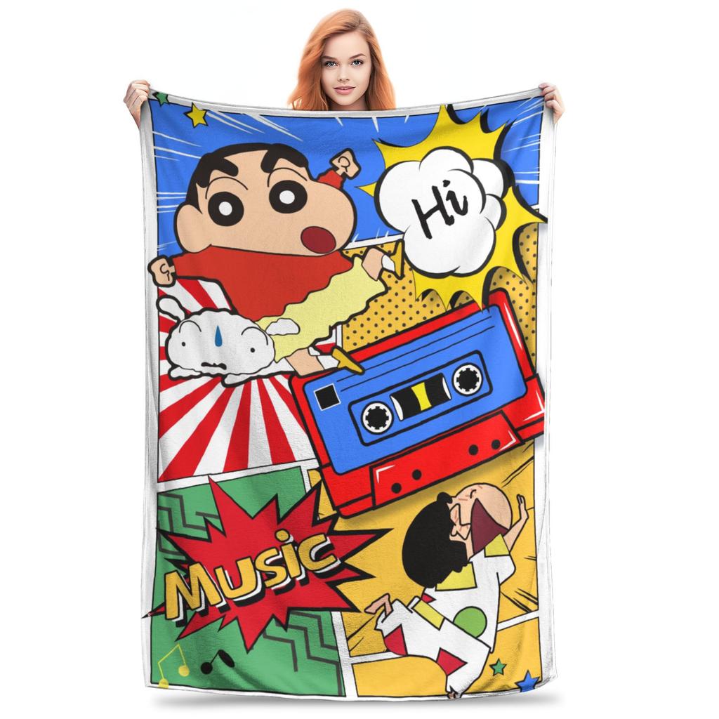 Плюшевый музыкальный плед с Крэйоном Шин-чаном для детей и взрослых, фланелевый, для кровати, накидка для улицы, теплый дизайн, покрывало, подарок на день рождения