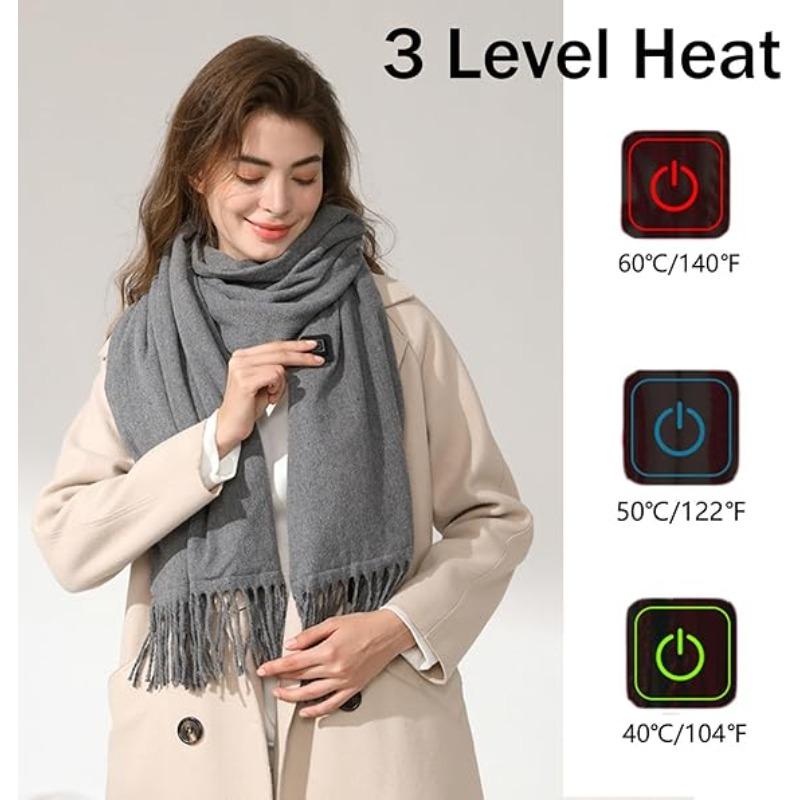2025 USB Charging Electric Heated Scarf Rechargeable Adjustable Temperature Electric Winter Warmer Creative Unisex Warm Shawl