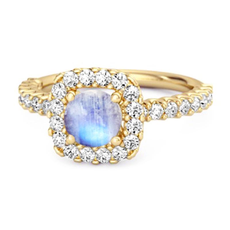 925 sterling silver cushion halo ring with 0.69 ct total weight featuring a 4mm round moonstone. A soft, mystical design ideal for everyday or spiritual gifting.