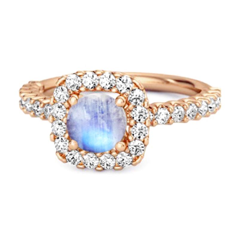 925 sterling silver cushion halo ring with 0.69 ct total weight featuring a 4mm round moonstone. A soft, mystical design ideal for everyday or spiritual gifting.