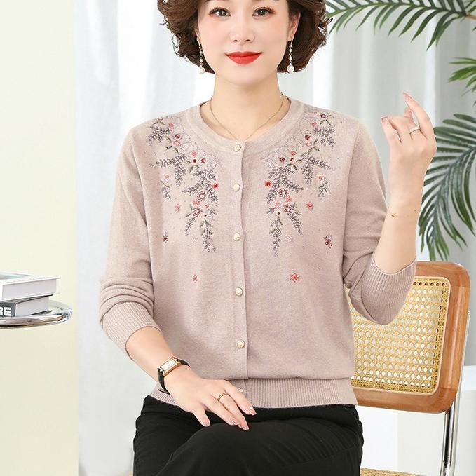 Женский кардиган из шерсти с круглым вырезом, осенне-зимний, свободного кроя, с вышивкой стразами, вязаный кардиган-топ