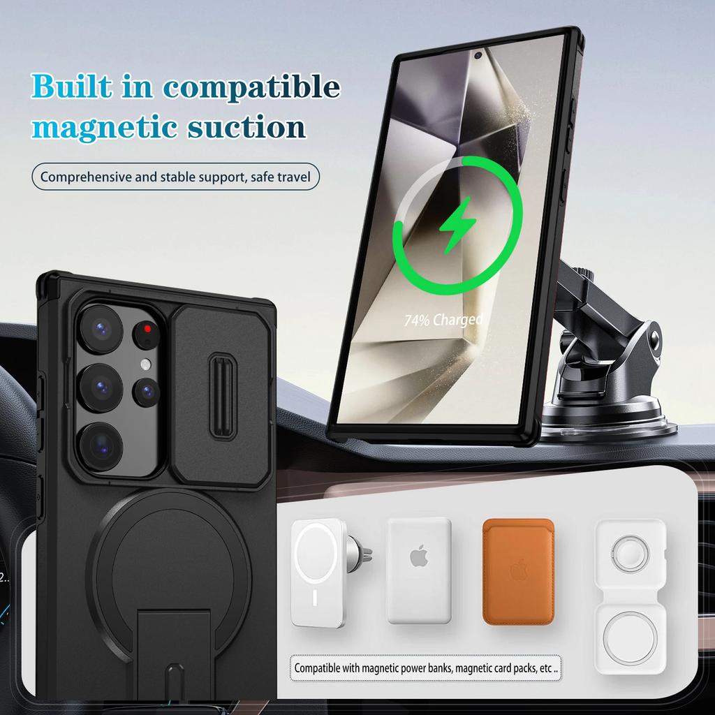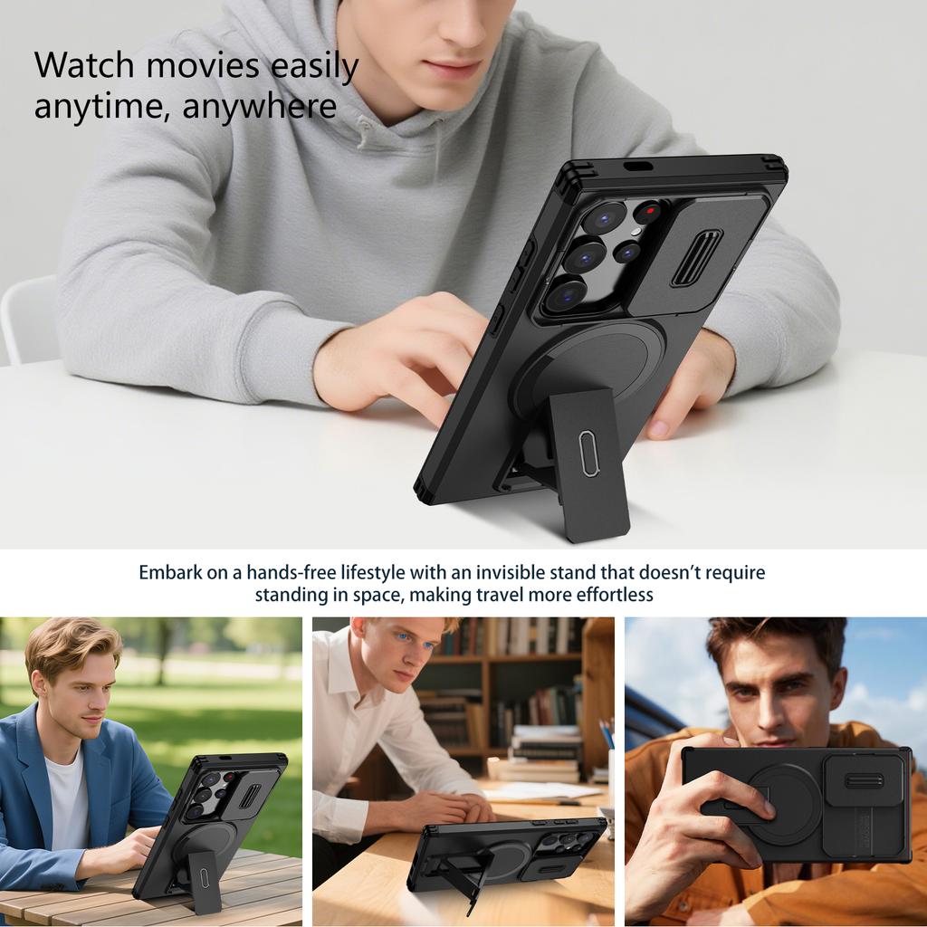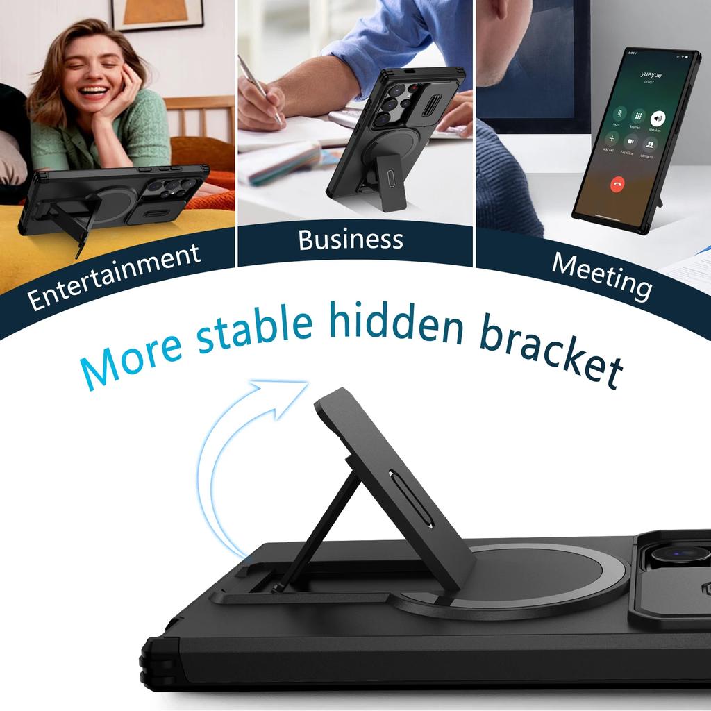 Чехол-броня с подставкой для защиты объектива для Samsung Galaxy S25 FE 5G A17 S24 Ultra S25 Plus A16 A26 A36 A56