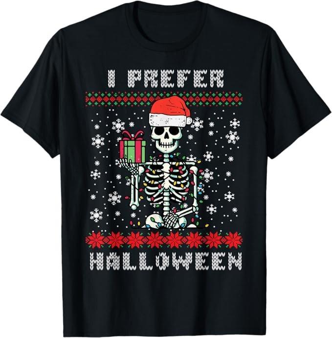Рождественский Скелет Я Предпочитаю Хэллоуин Уродливый Рождественский Мужская Женская Футболка