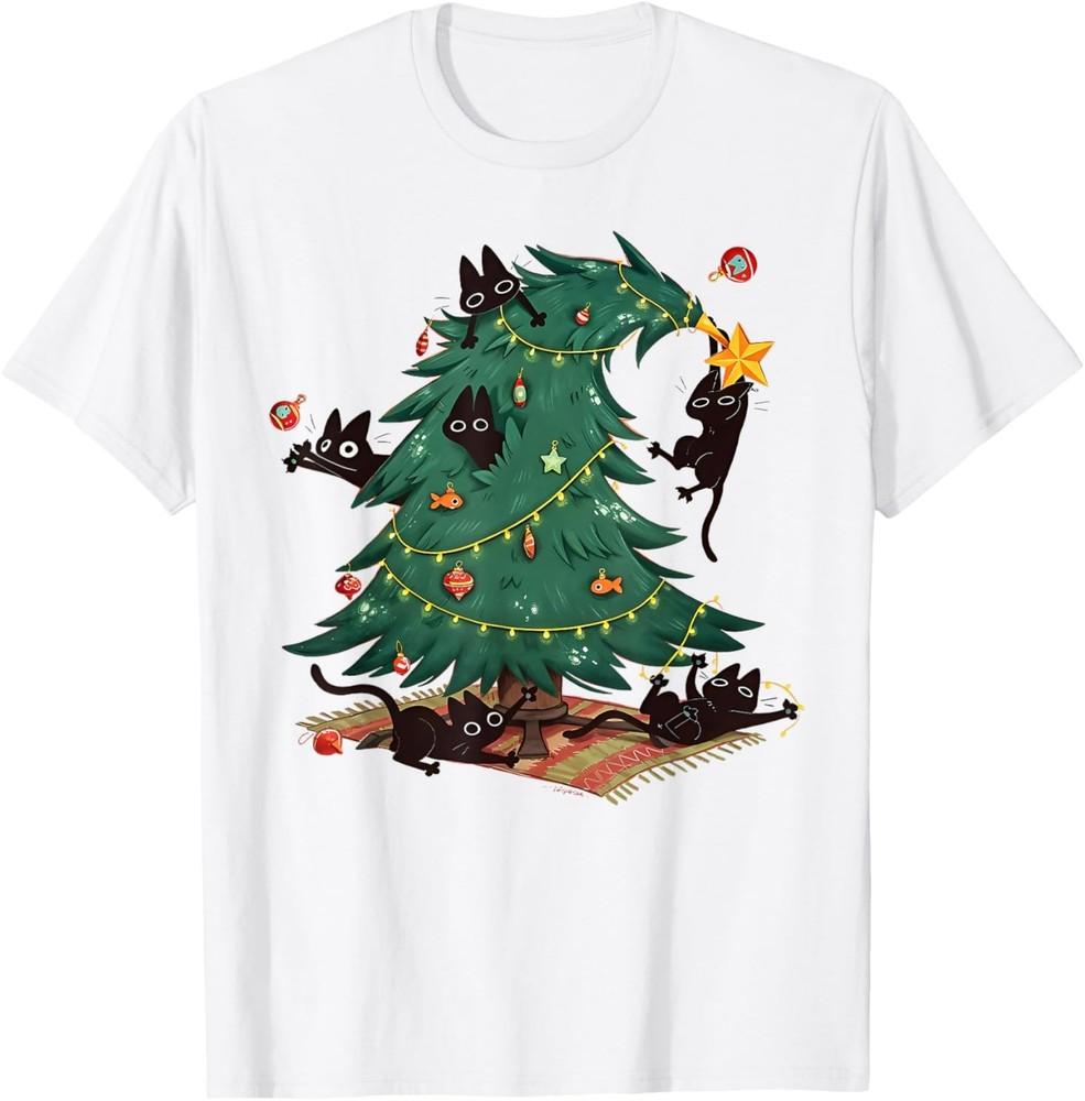Funny Black Cats Christmas Xmas Tree Family Pajamas Holiday T-Shirt