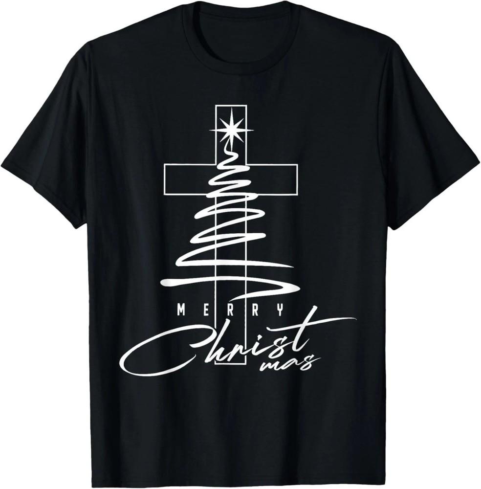 Христианский Крест Иисус С Рождеством Рождественская Елка Праздничный Лучшая Футболка