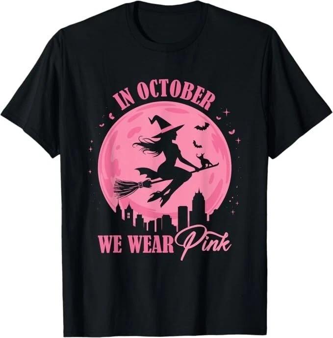 In October We Wear Pink Witch Halloween Unisex T-Shirt — купить товар онлайн с бесплатной доставкой по всему миру!