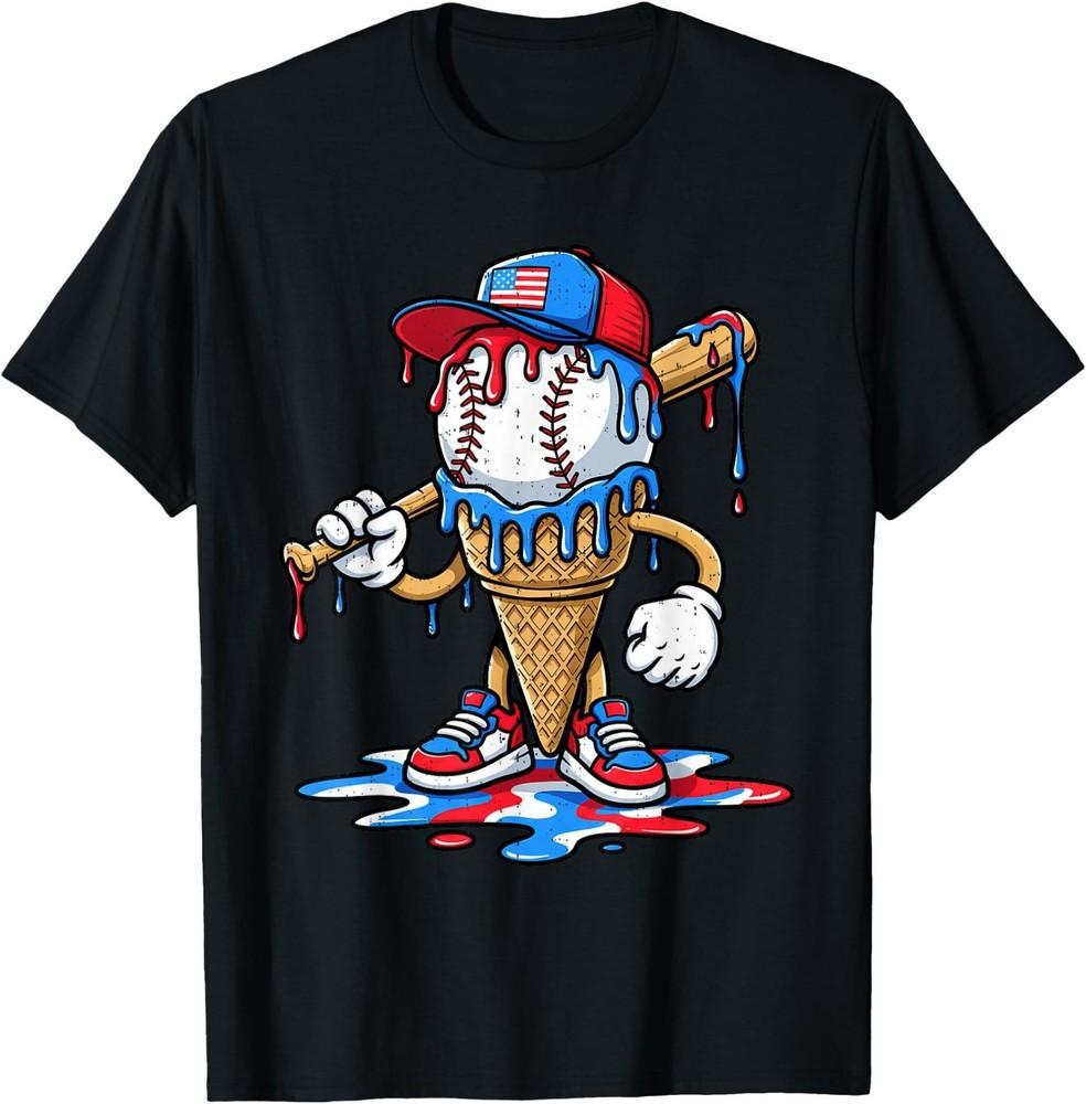Baseball Lifestyle 101 Sport Drip Ice Cream T-Shirt, — купить товар онлайн с бесплатной доставкой по всему миру!
