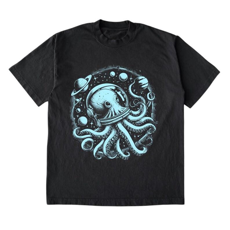 Ретро Осьминог в Космосе Смешная Графическая Футболка 90-х, Винтажная Футболка с Осьминогом