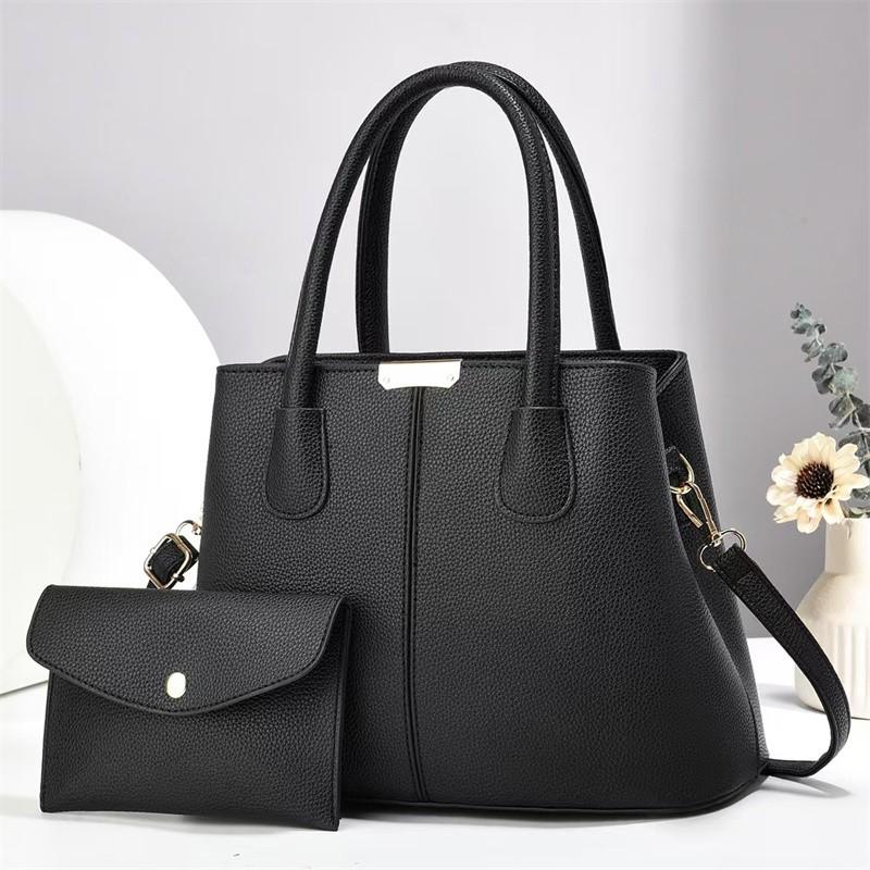 Женский набор из 2 предметов: черная сумка-тоут, стильная кожаная сумочка с подходящим кошельком и регулируемым ремнем для ношения через плечо