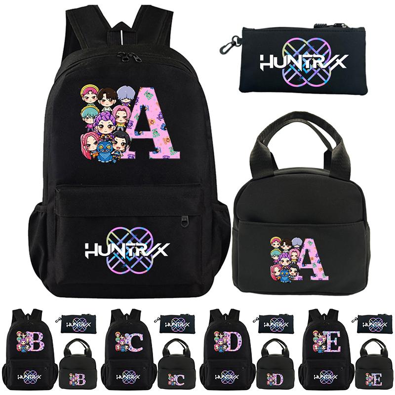 3Pcs/set 26 English Letter Printed Backpack with Shoulder Bag Pencil Case for Teenager Student Boy Girl Schoolbag Large Capacity Bookbag Kid Gift
