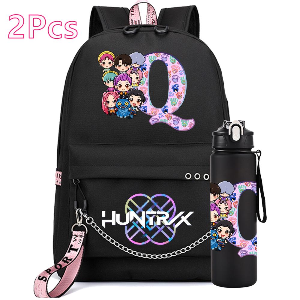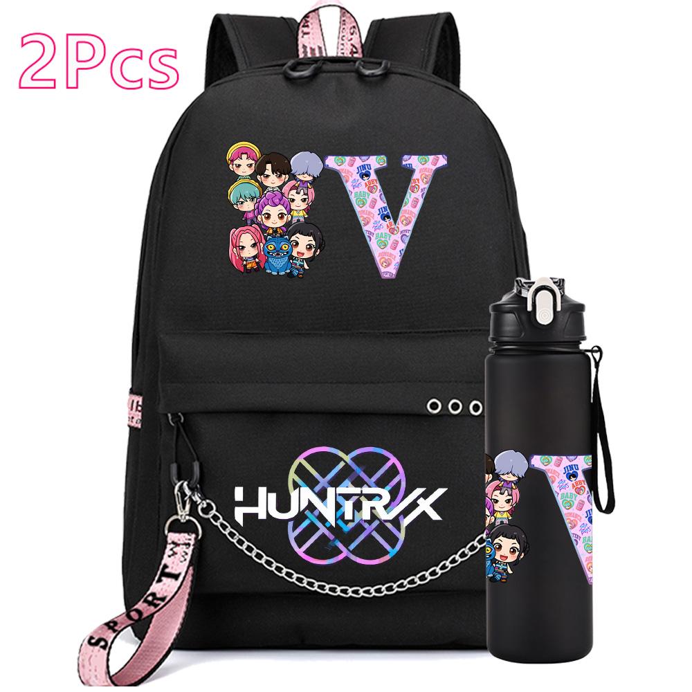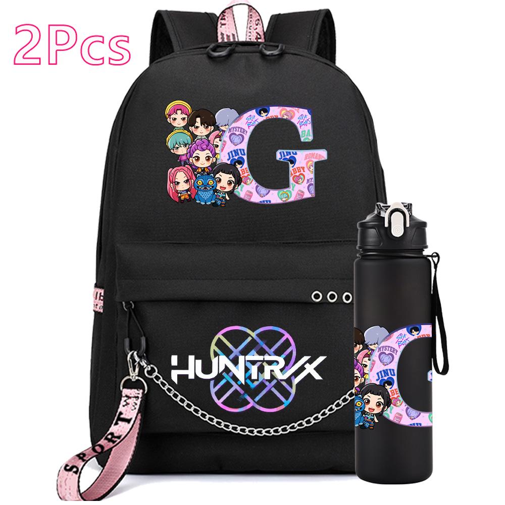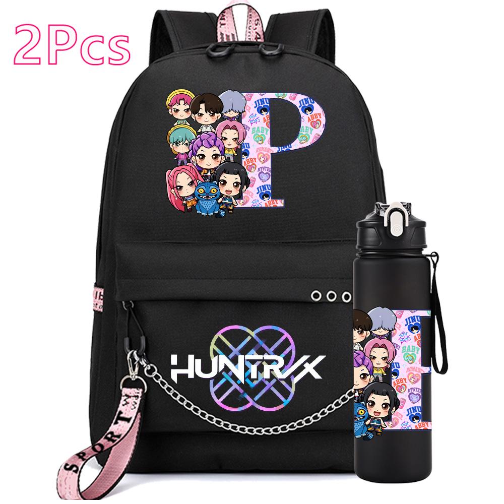2Pcs/set 26 English Letter K-pop Printed Backpack with 750Ml Water Bottler for Teenager Girl Boy Bookbag Kid Gift Large Capacity waterproof Travel Bag