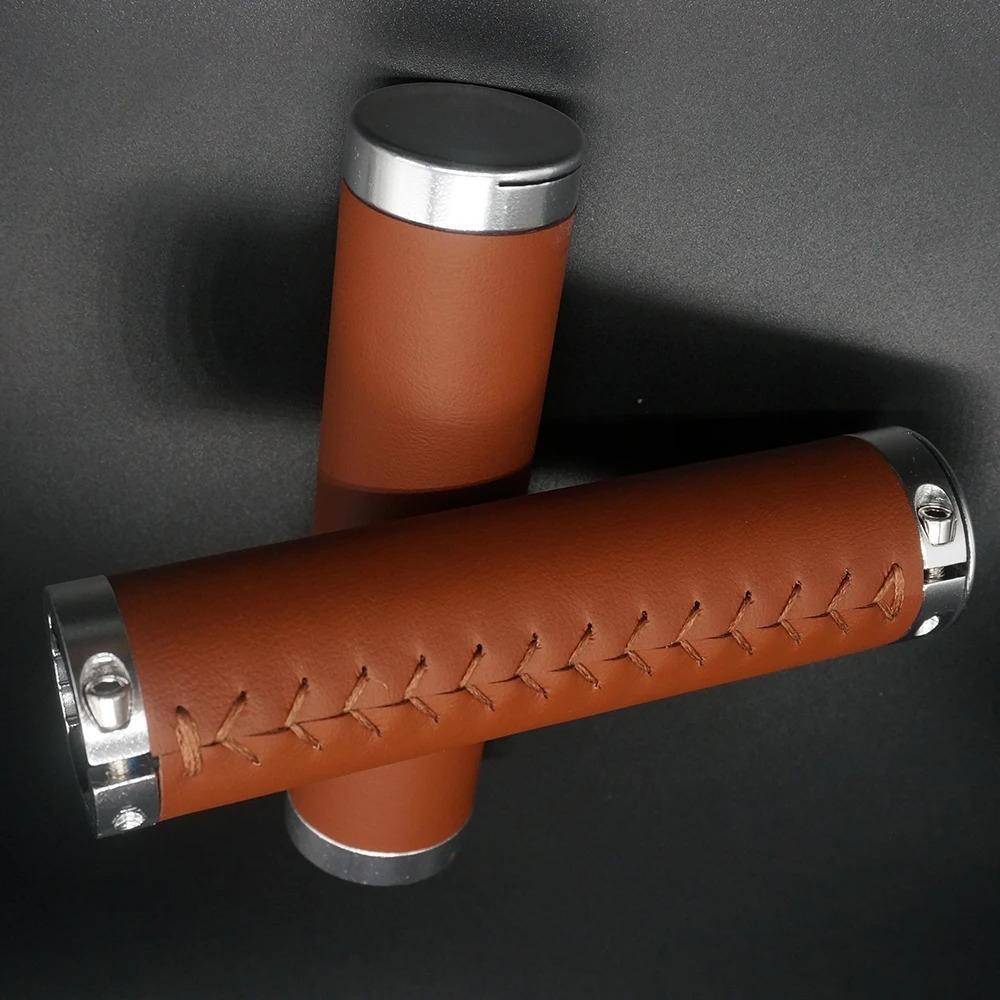 Bicycle Leather Handlebars Shock-absorbing Dead Fly Folding Bike Scooter Handlebars Hand-sewn Handlebars PU Leather Retro Grips