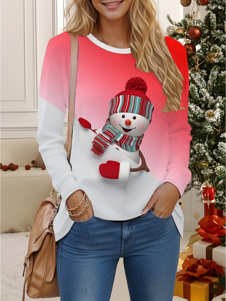 Топы для женщин 3D Рождественский принт Круглый вырез Длинный рукав Футболка Осень Повседневный Облегающий Пуловер Женский Топ с длинным рукавом
