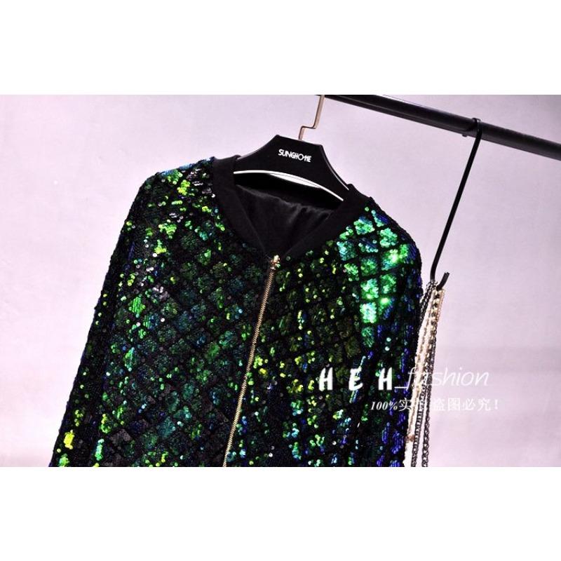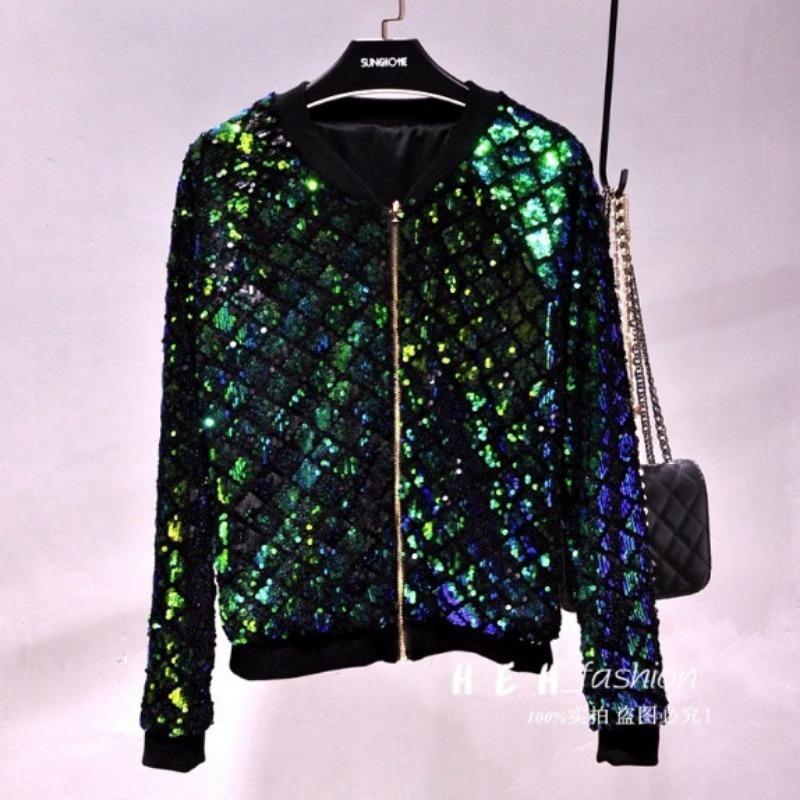 Новая куртка с пайетками, маленькое пальто, круглый вырез, длинные рукава, универсальный короткий топ в стиле Гонконга, шикарный топ, бейсбольная форма для женщин