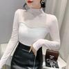 Европейская Осень Новая Мода Для Похудения С Сетчатыми Вставками Горячие Стразы Сексуальная Универсальная Футболка с Длинным Рукавом для Повседневной Носки