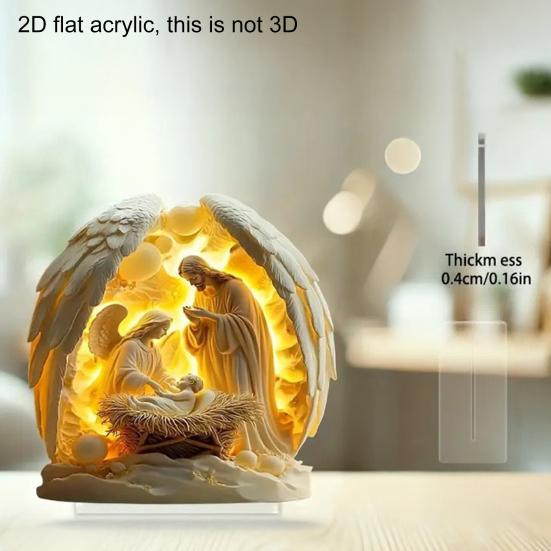 Украсьте свой праздничный декор этой табличкой с рождественским вертепом, универсальным религиозным элементом, идеально подходящим для Рождества и не только.. Изготовленное из высококачественного акрила, это уникальное 2D-искусство добавляет элегантность и очарование любой полке, столу или пространству, нуждающемуся в праздничном акценте.. Дизайн прекрасно символизирует божественное рождение, что делает его идеальным дополнением к вашим сезонным украшениям..