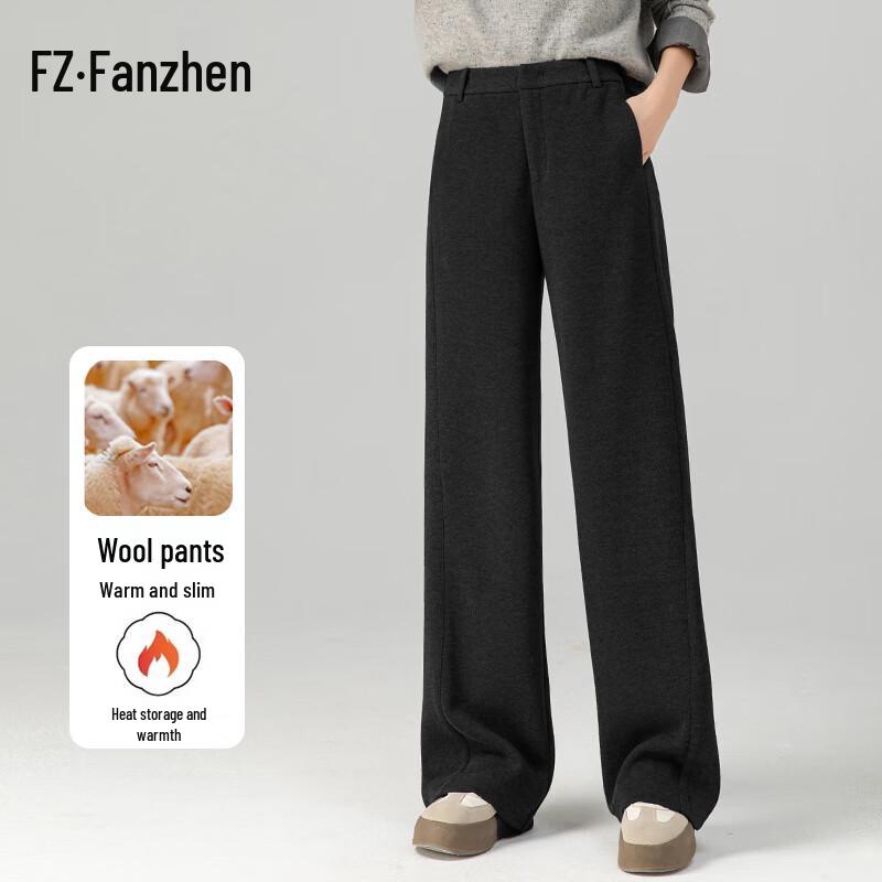 Fanzhen Women's Wool Blend Loose Wide-Leg Trousers