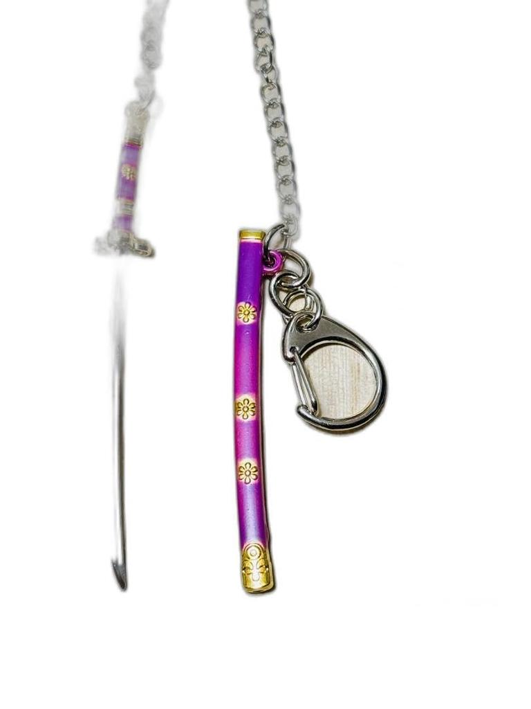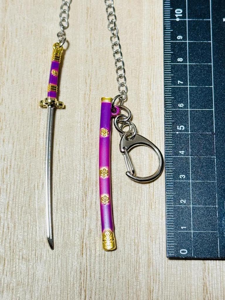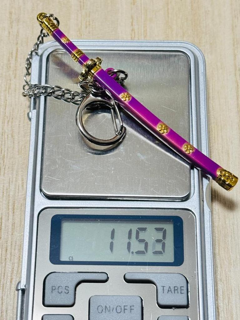 9см Эмма (Светло-фиолетовый) Зоро Ван Пис Мини Брелок для Ключей Оружие Аксессуар Фигурка Кукла Дисплей Совместим с PS4, PS5, Аниме, Играми, ПК, Компьютером, Игрушка из Сплава, Металлическая Миниатюра, Легенда