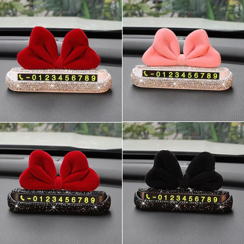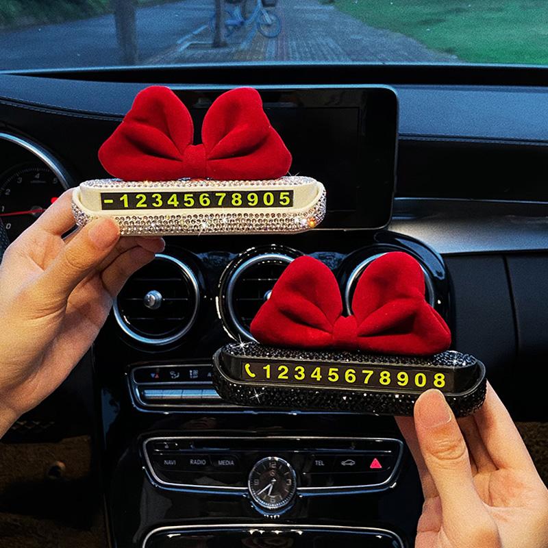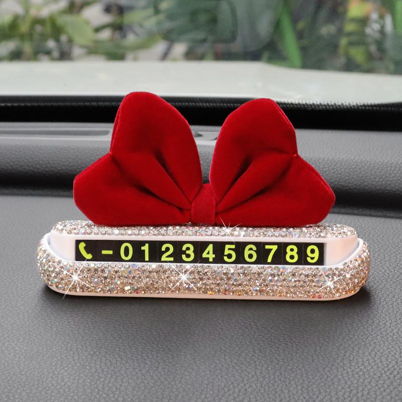 Креативный красный бант для автомобиля, временная парковка, номер телефона, карточка, номер телефона, стразы, наклейки на автомобиль, Decro