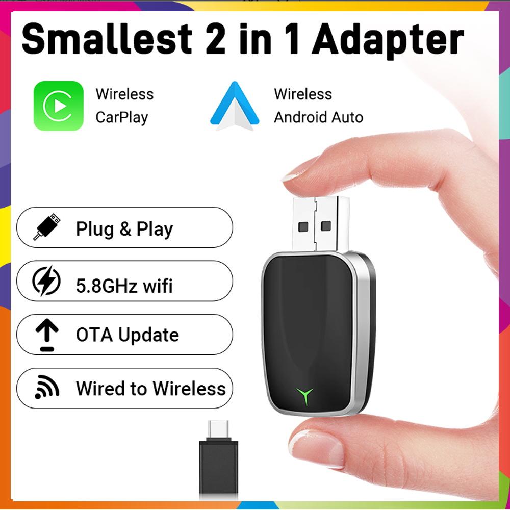 2025 Новое обновление 2-в-1 Мини Беспроводной адаптер CarPlay Преобразует проводной в беспроводной 5 ГГц Wi-Fi и потоковая передача с низкой задержкой Коробка Plug & Play — купить товар онлайн с бесплатной доставкой по всему миру!