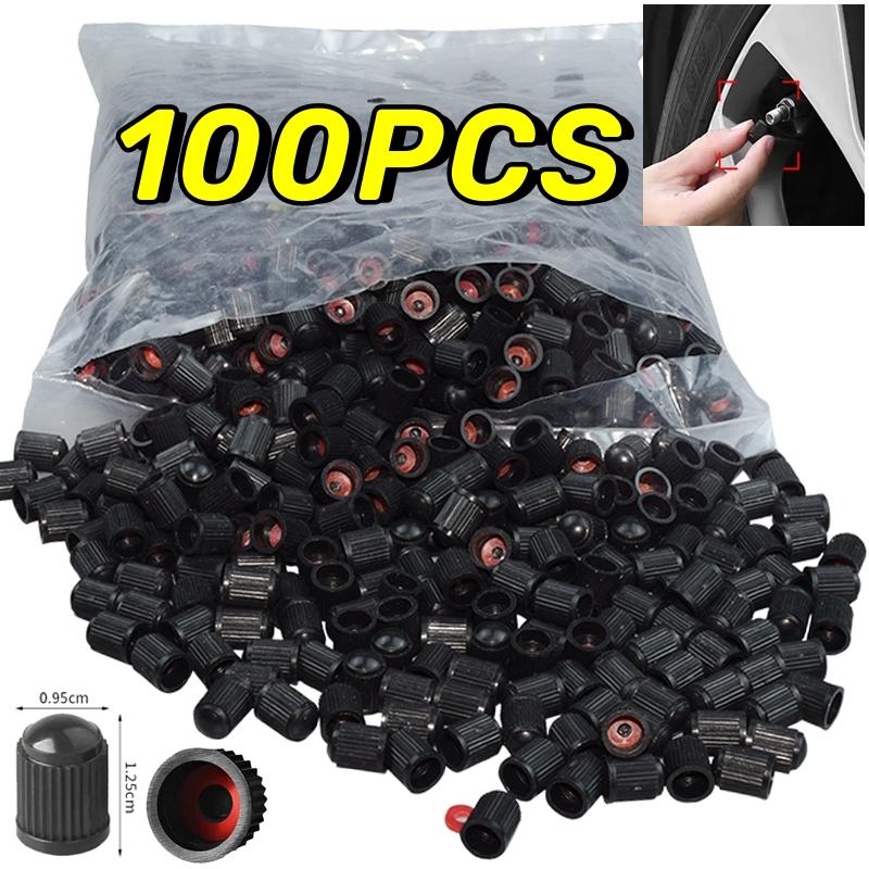 100 шт. Пластиковые черные колпачки для автомобильных шин, колпачки для вентилей велосипедных шин с уплотнительным кольцом, куполообразный пылезащитный клапан для автомобилей, велосипедов, мотоциклов