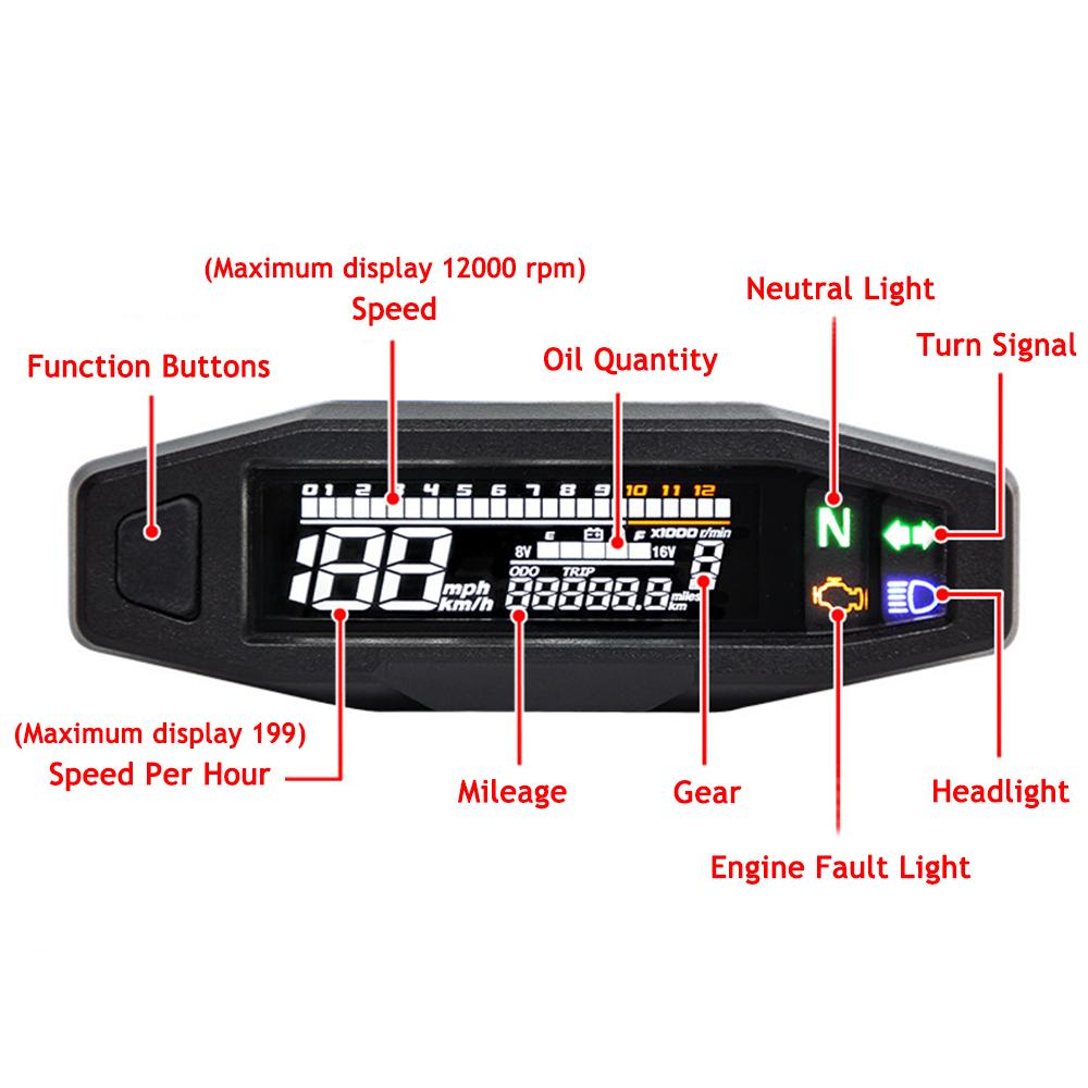 Мотоциклетный спидометр, указатель уровня масла, тахометр, универсальный мотоциклетный прибор, HD LCD цифровой одометр, аксессуары для мотоциклов 12 В