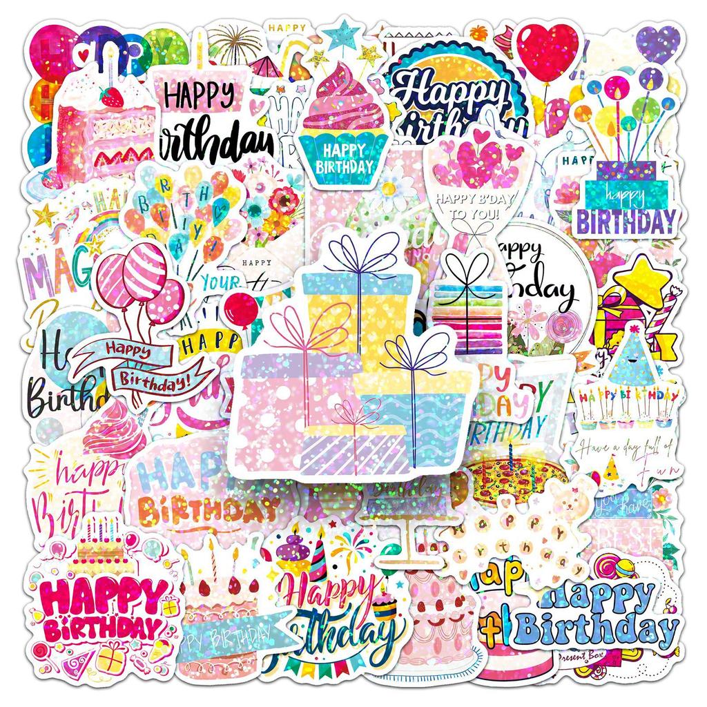 50 Happy Birthday Flash Point Laser Creative Waterproof Decorative Handbook Stickers