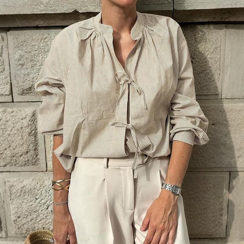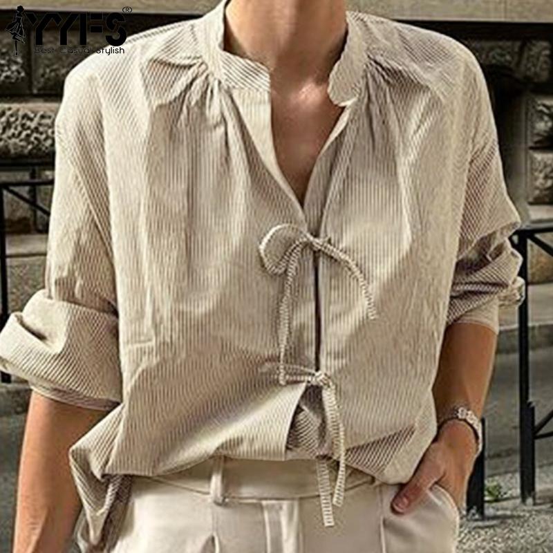 YYFS Женская мода повседневная весна осень полосатый принт длинный рукав полуводолазка блузки и рубашки