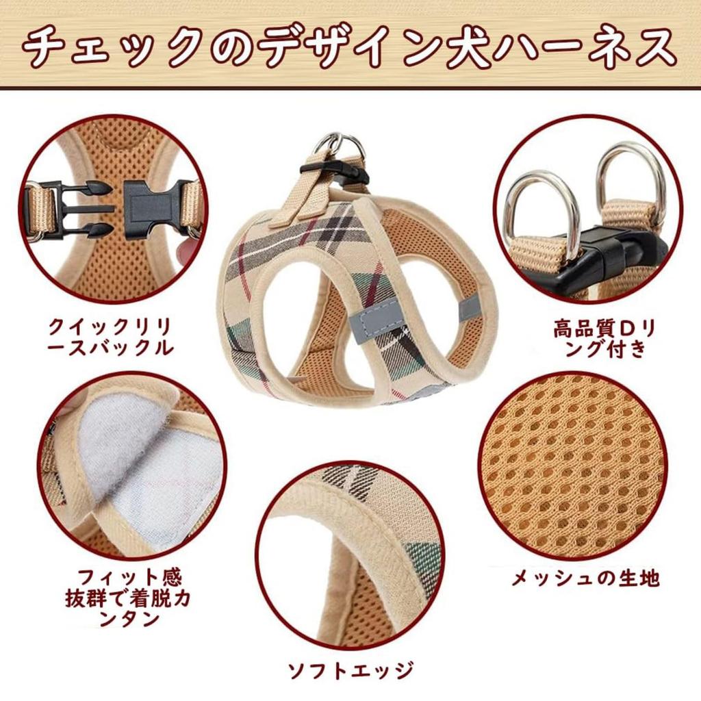 BINGPET Dog and Leash Set for Small Checkered Design with Mesh Vest with Reflective Easy to Put on and Take and Cute Size Harness, Collar, Dogs,
