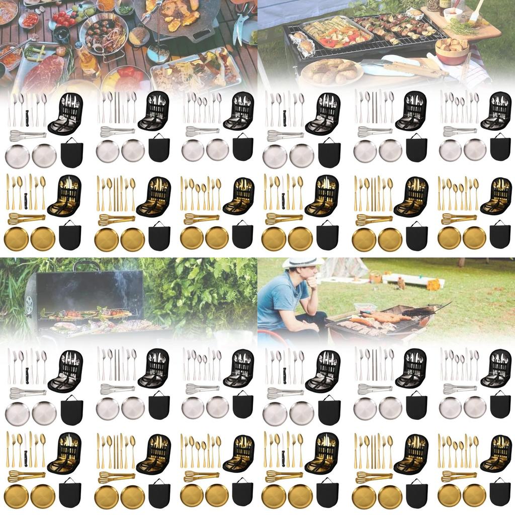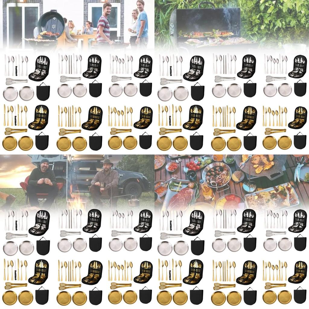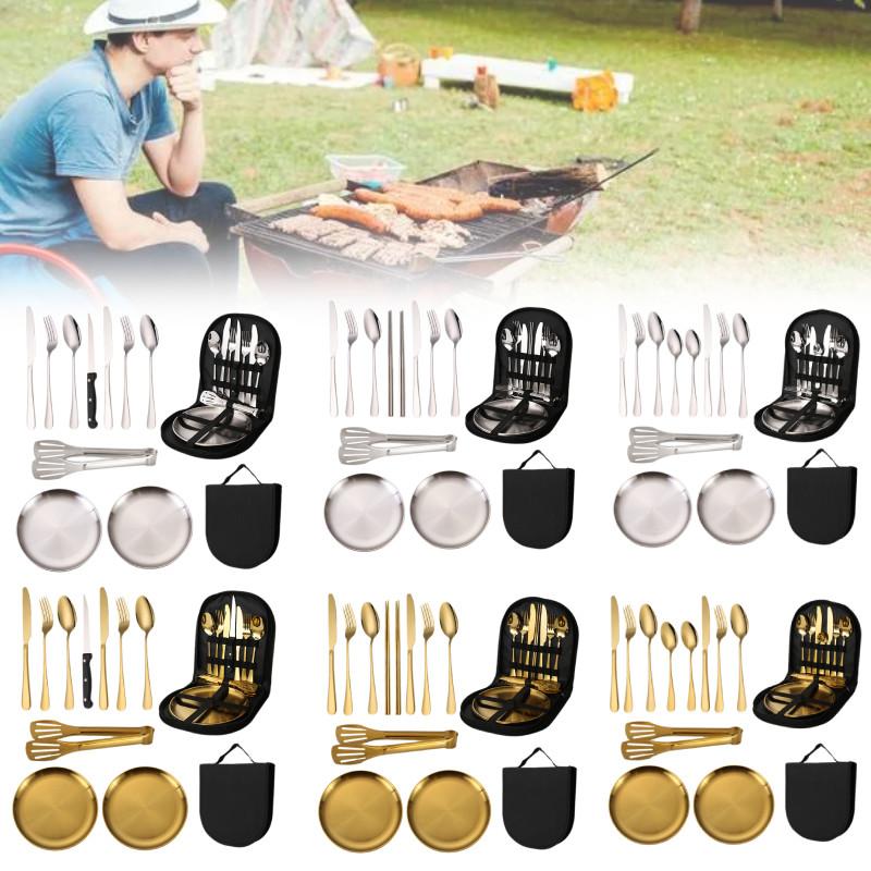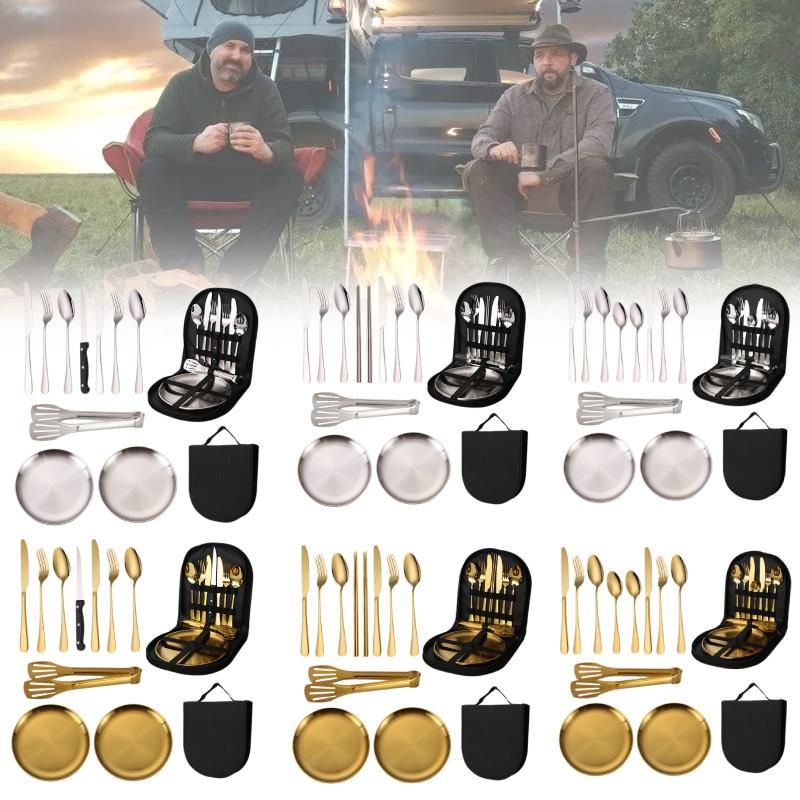 Премиальный набор уличной посуды из нержавеющей стали для кемпинга, путешествий, с элегантным современным дизайном