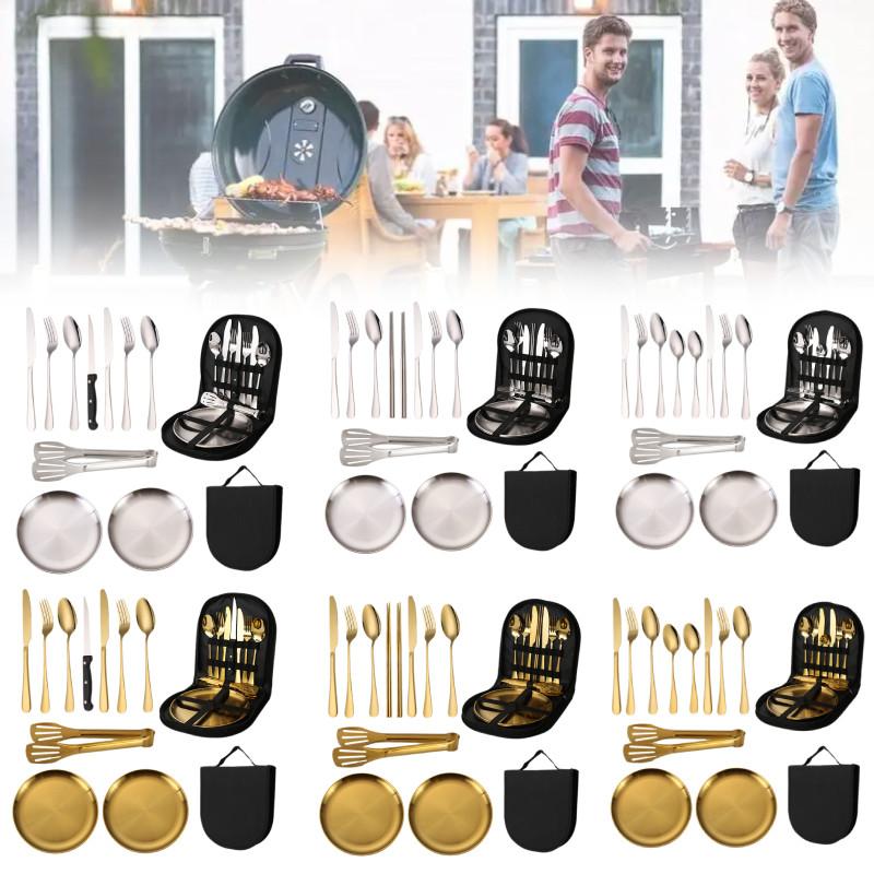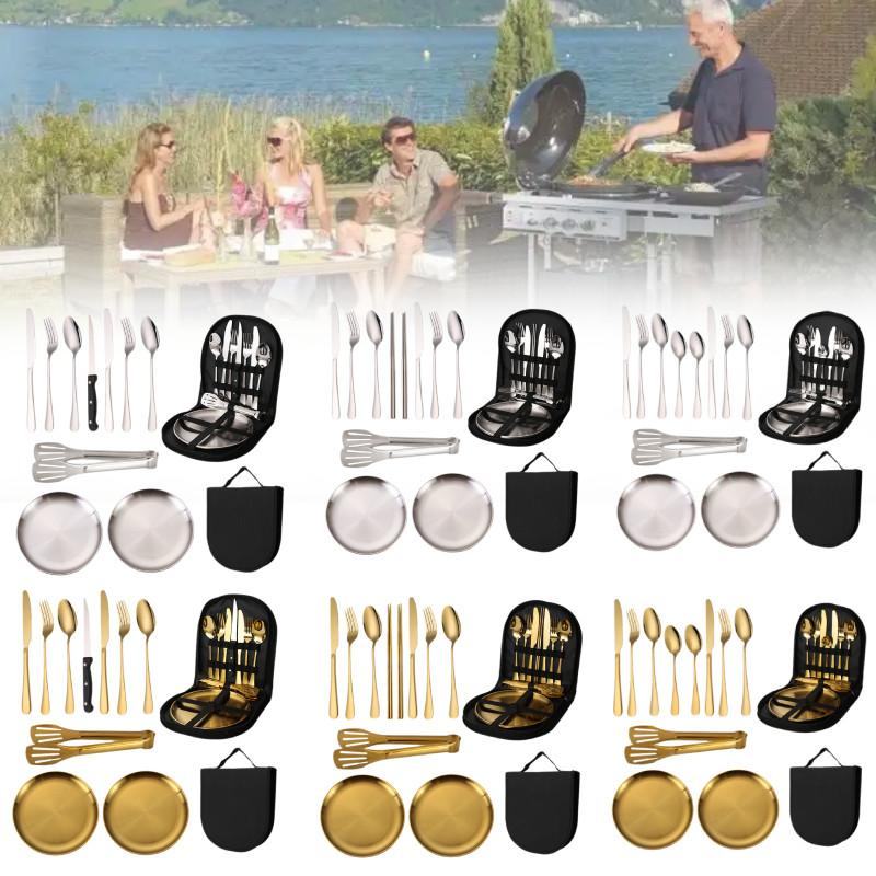Представляем наш Премиальный Набор Столовых Приборов из Нержавеющей Стали для Отдыха на Природе — идеальный компаньон для ваших приключений на свежем воздухе, будь то кемпинг, пикник или барбекю. Этот универсальный набор столовых приборов, изготовленный из высококачественной нержавеющей стали, сочетает в себе функциональность и элегантность, гарантируя, что каждая трапеза на открытом воздухе будет такой же особенной, как и обед дома.. Благодаря своему изящному и современному минималистичному дизайну, этот набор столовых приборов не только выполняет свое предназначение, но и добавляет нотку изысканности вашему отдыху на открытом воздухе.