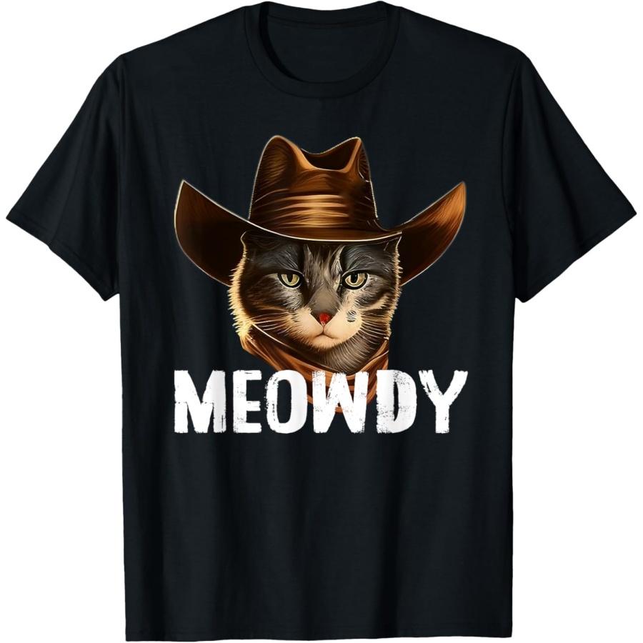 Meowdy Cat Cowboy Funny Cat Meme T-Shirt — купить товар онлайн с бесплатной доставкой до всему миру!