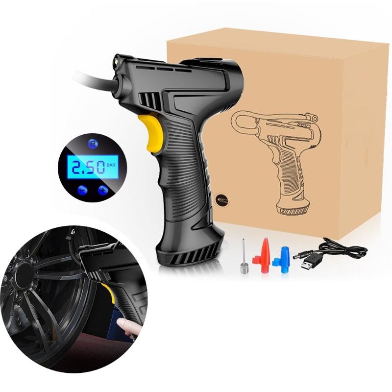 Ручной воздушный компрессор 120 Вт, беспроводной насос для накачивания шин с цифровым дисплеем для автомобиля, мотоцикла, велосипеда