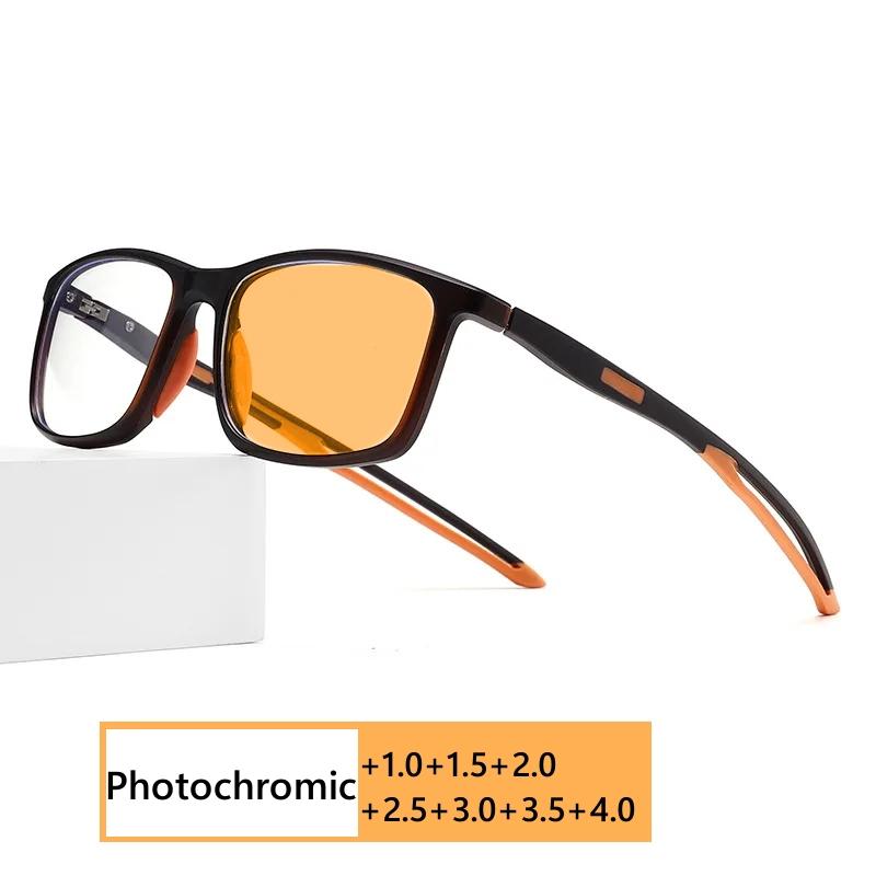 Модные винтажные фотохромные очки для чтения TR90, гибкие меняющие цвет очки для пресбиопии, ретро-очки для спорта на открытом воздухе до +4,0