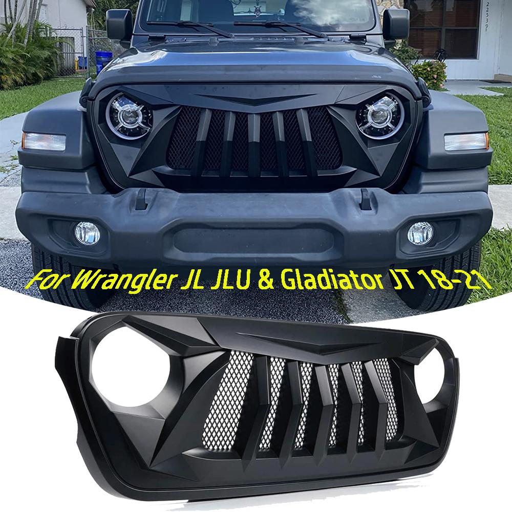 Матовая черная решетка радиатора с сеткой для Jeep Wrangler JL JT 2018 2019 2020 2021 пикап 4x4 внедорожная решетка Voor